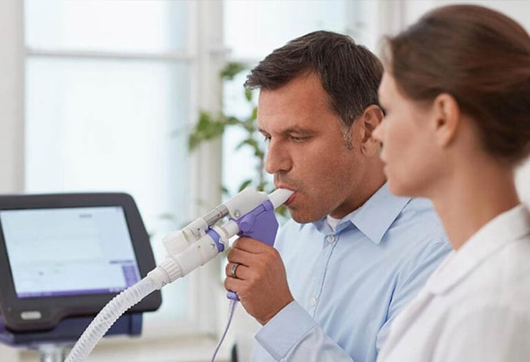 Η εξέταση είναι σύντομη,εύκολη, ασφαλής και πραγματοποιείται με ειδική συσκευή που καταγράφει τις αναπνευστικές παραμέτρους. Μέσα από συγκεκριμένες αναπνευστικές προσπάθειες, καταγράφεται η ικανότητα των πνευμόνων να εισπνέουν και να εκπνέουν αέρα.